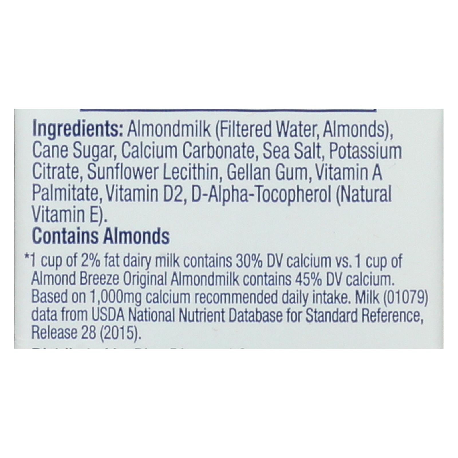 Almond breeze almond milk, original is a natural and delicious milk alternative. Made with natural ingredients, almond breeze almond milk is free of unnatural and unnecessary additives, making it a pure and healthy addition to a healthy and balanced diet. Each carton of almond breeze almond milk, original contains 32 fl. Oz. Of almond milk. Keep refrigerated, shake well before using and use within seven days of opening. See nutrition facts panel for allergens.