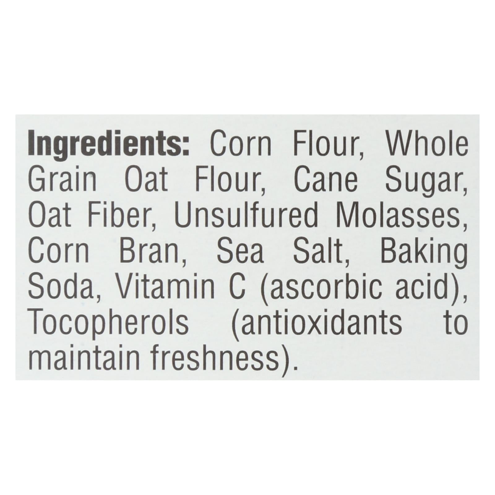 ingredients : corn flour;whole grain oat flour;cane sugar;oat fiber;unsulfured molasses;corn bran;sea salt;baking soda;vitamin c (ascorbic acid);tocopherols (antioxidants to maintain freshness)