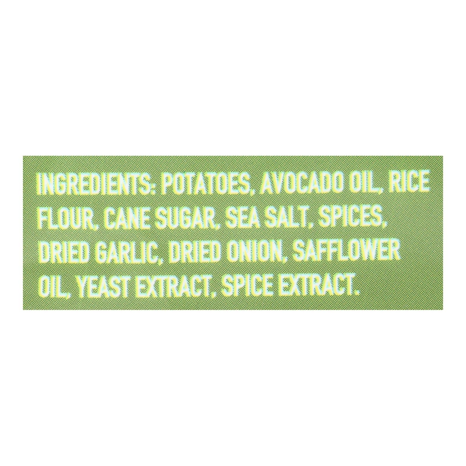ingredients : potatoes;avocado oil;rice flour;cane sugar;sea salt;black pepper;dried garlic;dried onion;safflower oil;yeast extract;spice extract