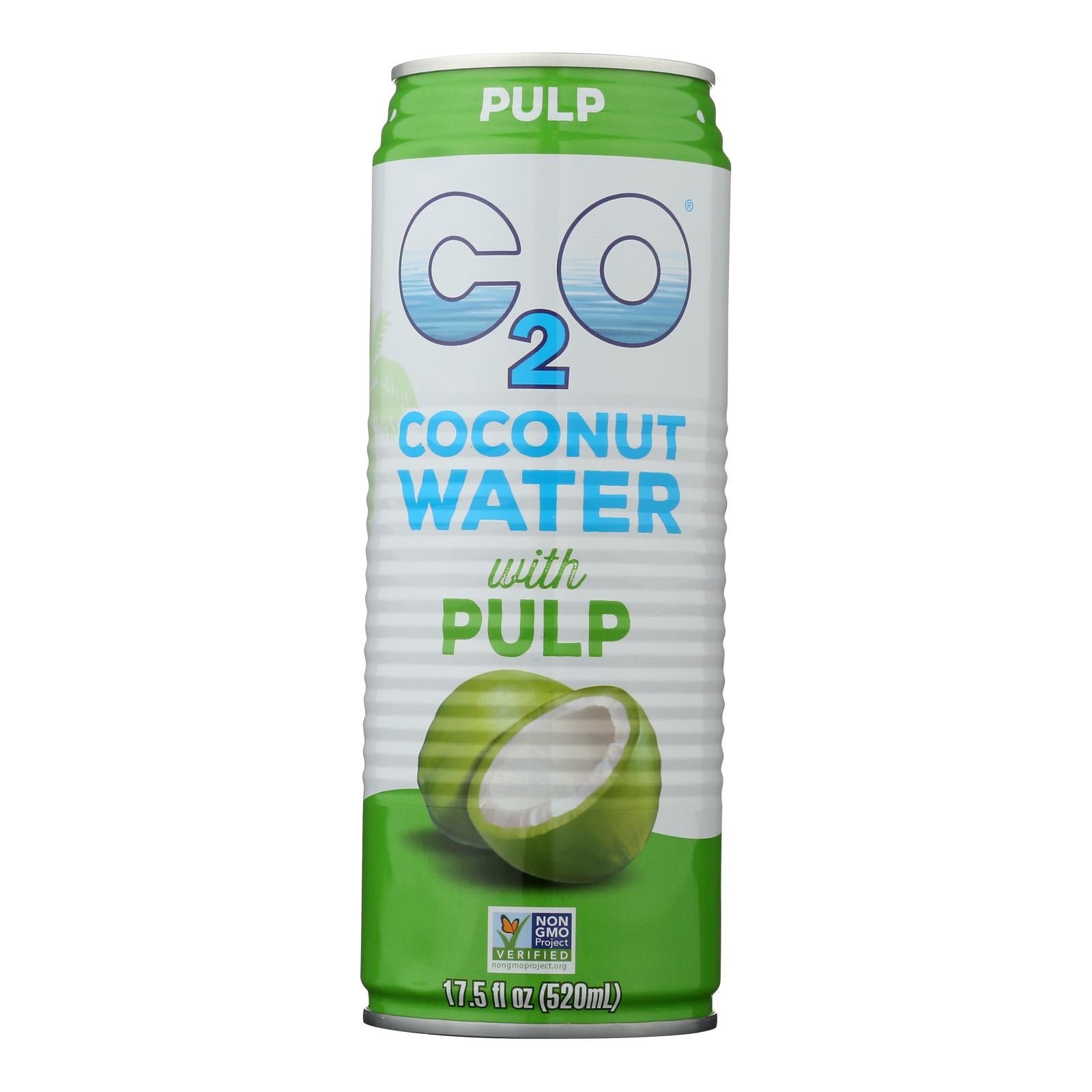 C2o pure coconut water with pulp contains 100% natural coconut water and young coconut pulp. It is free of fat, sugar, sweeteners and cholesterol. It is also gluten-free, gmo-free and ph neutral. Each 8 oz. Serving within the 17.5 fl. Oz. Can of c2o pure coconut water provides 8% of the daily recommended amount of potassium and 24% of the daily recommended amount of manganese.
