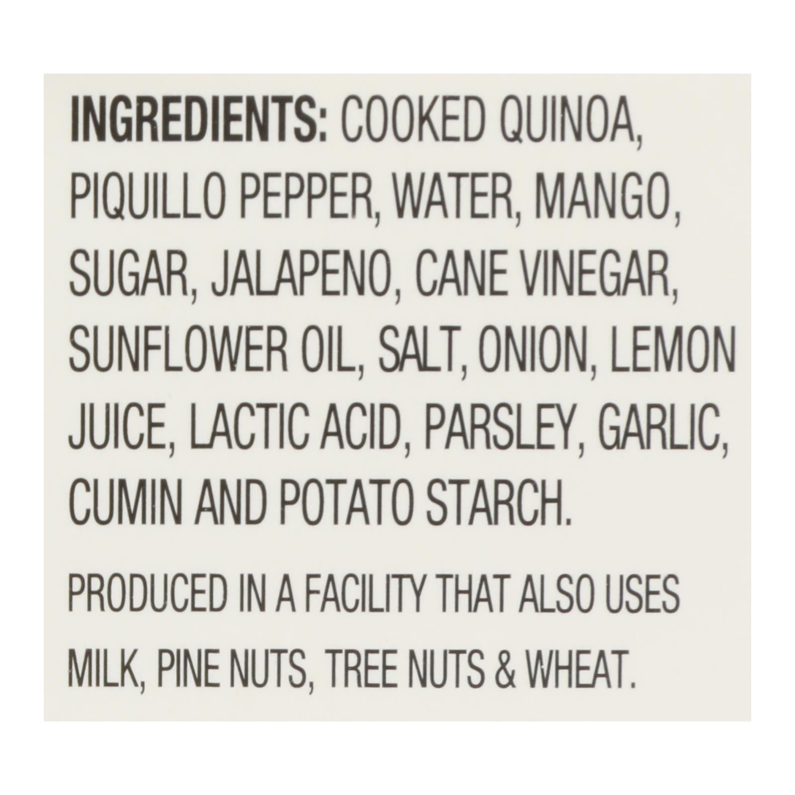 ingredients : cooked quinoa;piquillo pepper;water;mango;sugar;jalapeno;cane vinegar;sunflower oil;salt;onion;lemon juice;lactic acid;parsley;garlic;cumin and potato starch