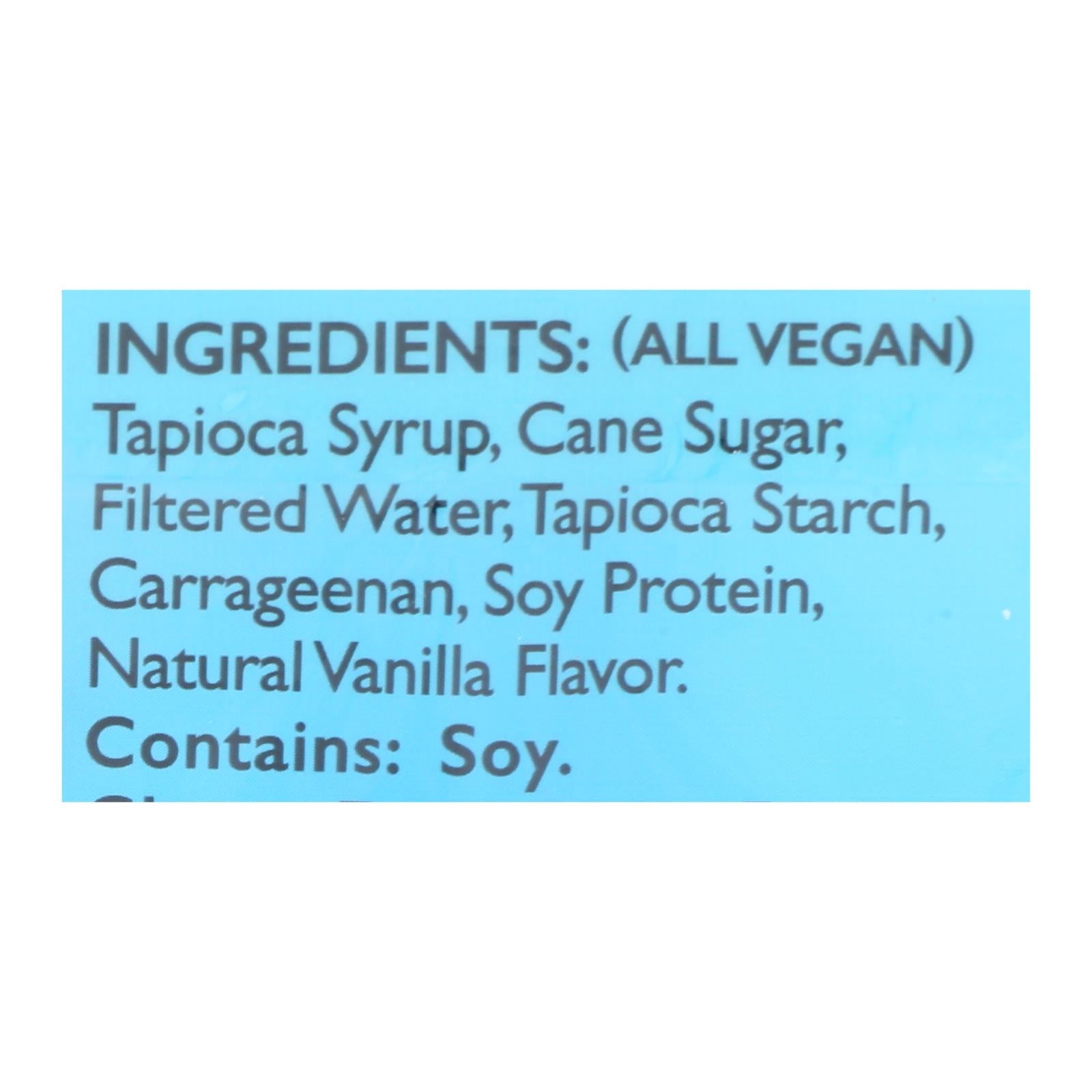 ingredients : (all vegan) tapioca syrup;cane sugar;filtered water;tapioca starch;carrageenan;soy protein;natural vanilla flavor