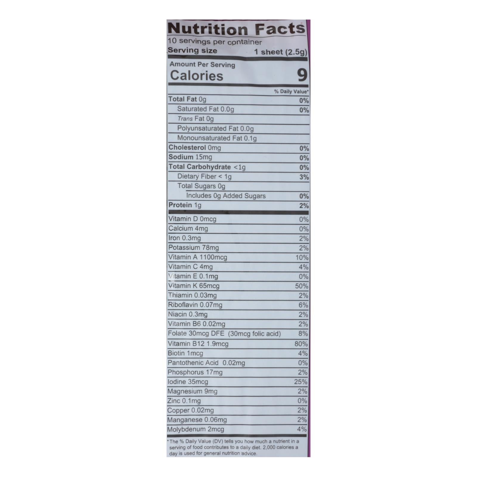 ingredients : organic nori seaweed