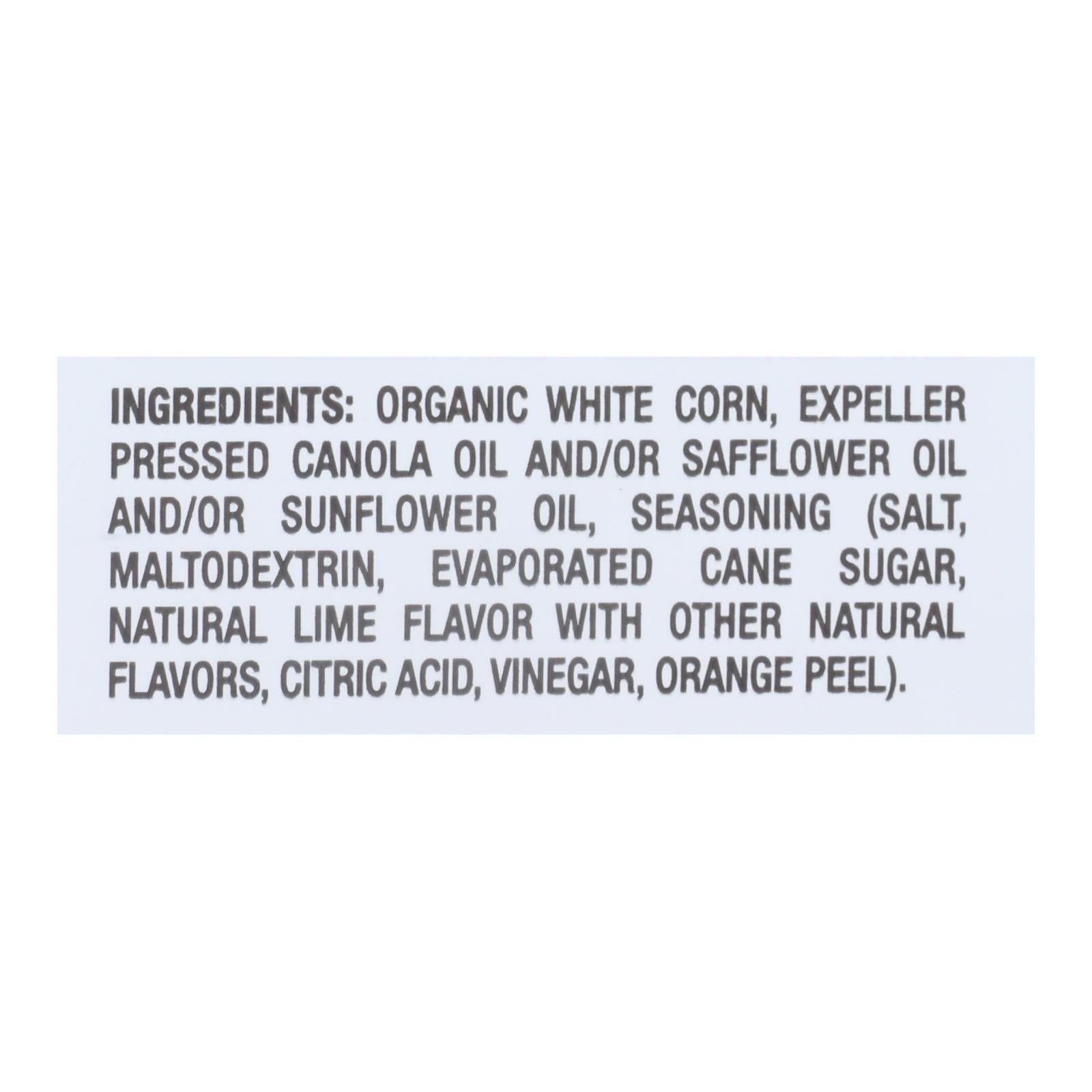 ingredients : organic white corn;expeller pressed canola oil and/or safflower oil and/or sunflower oil;seasoning (salt, maltodextrin, evaporated cane sugar, natural lime flavor with other natural flavors, citric acid, vinegar, orange peel)
