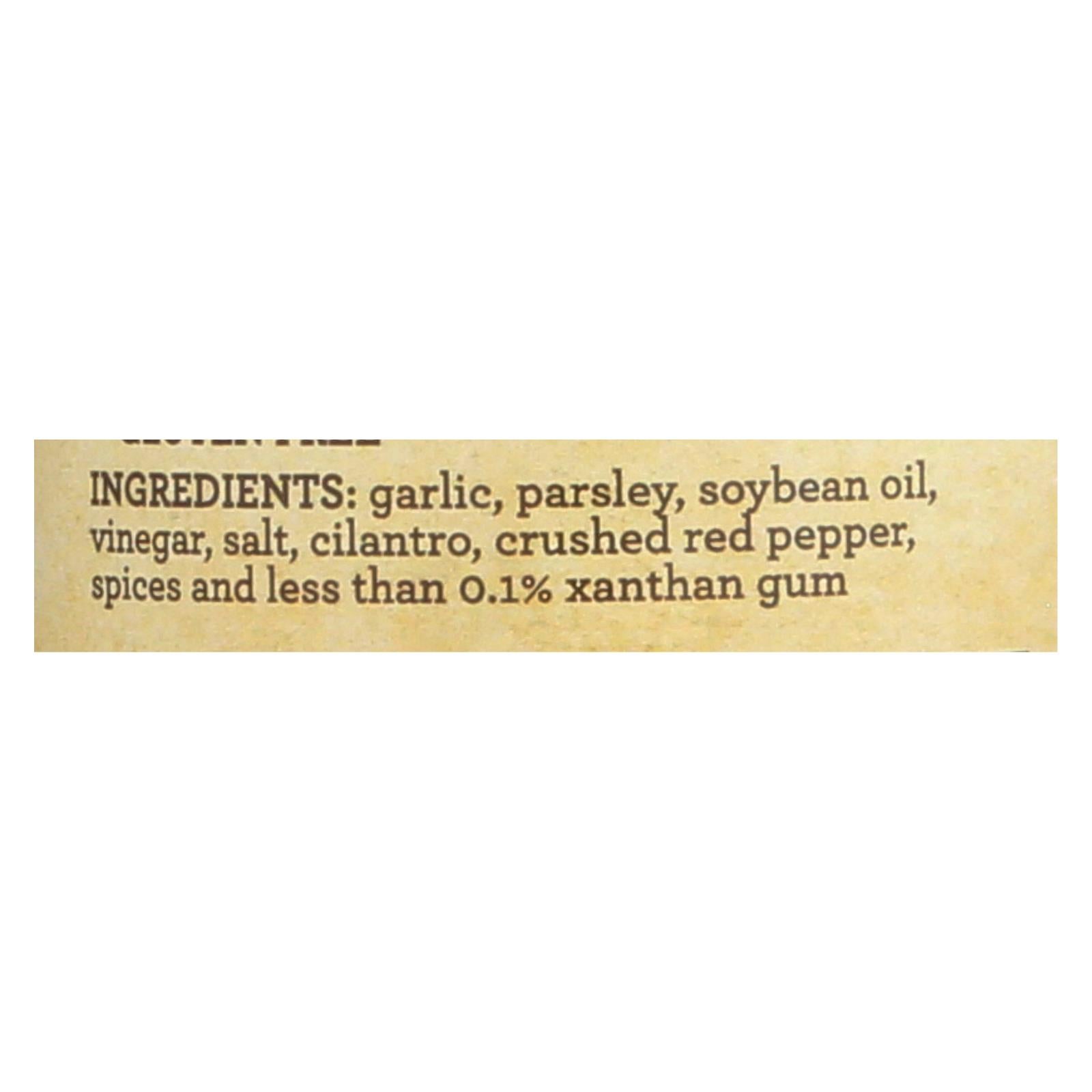 ingredients : garlic;parsley;soybean oil;vinegar;salt;cilantro;crushed red pepper;mint and less than 0;1% xanthan gum