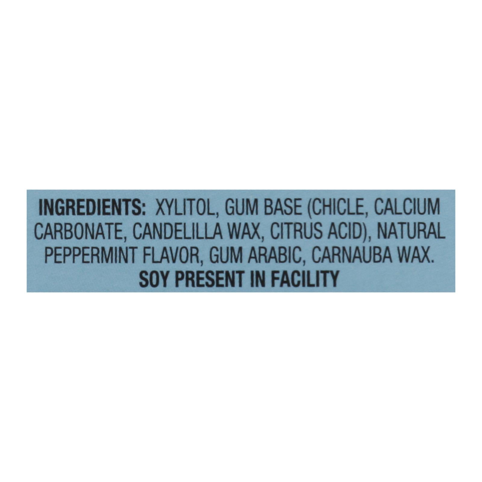 ingredients : xylitol;gum base;chicle;calcium carbonate;candelilla wax;citrus acid;natural peppermint flavor;gum arabic;carnauba wax