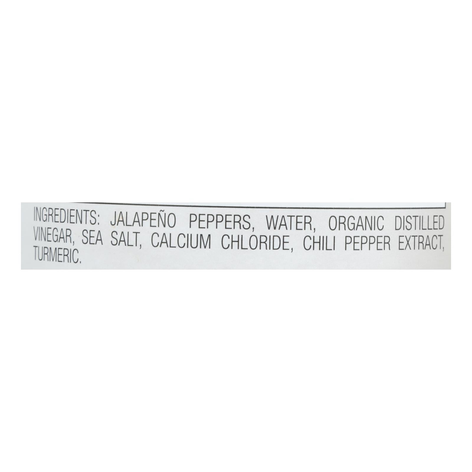 ingredients : jalapeno peppers;water;organic distilled vinegar;sea salt;calcium chloride;chili pepper extract;turmeric