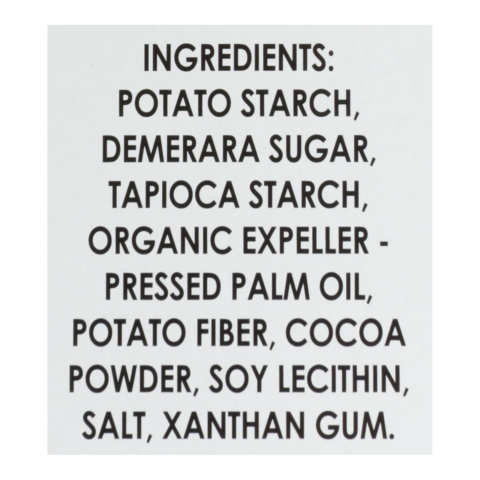 ingredients : potato starch;demerara sugar;tapioca starch;organic expeller - pressed palm oil;potato fiber;cocoa powder;soy lecithin;salt;xanthan gum