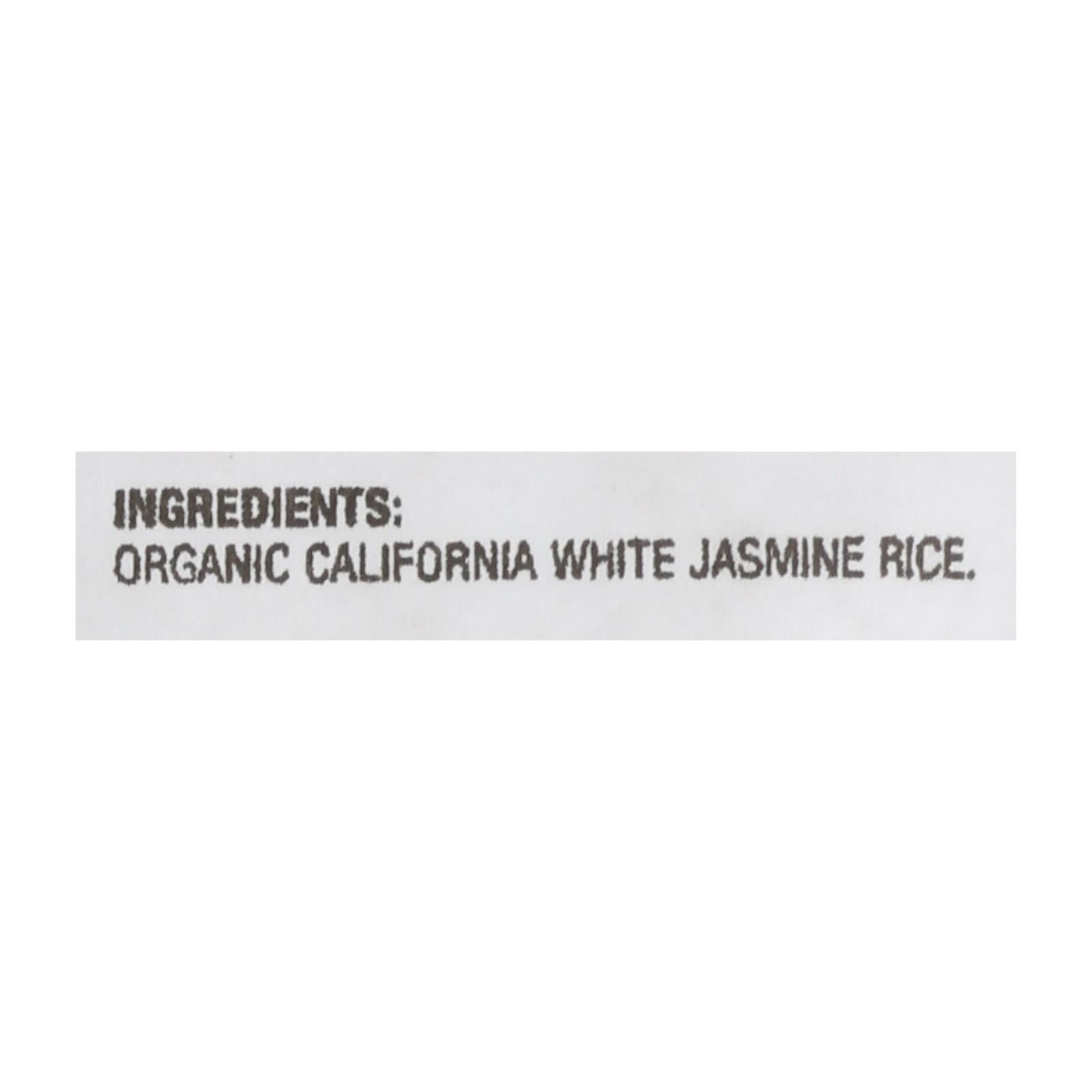 Lundberg family farms california white jasmine rice is an aromatic long grain rice your family will love. Fragrant, colorful and delicious, this rice is a perfect addition to meals when potatoes just won't do. Versatile organic goodness and light soft texture will make this rice an instant hit with children. Each bag of lundberg family farms california white jasmine rice contains 25 lbs. Of product, translating into about 252 servings and 160 calories per serving. See nutrition facts panel for allergens.