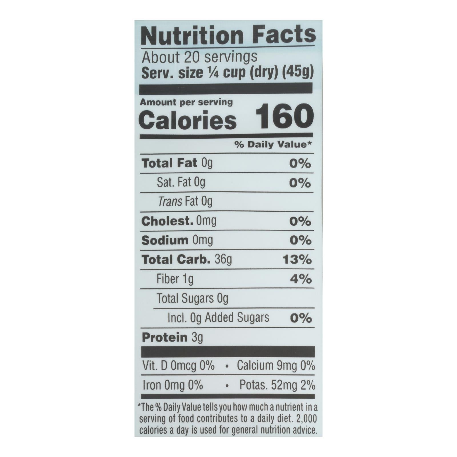 Lundberg family farms long grain white rice offers a delightful healthy addition to your meals. A perfect accompaniment to recipes when potatoes just won't do. Long grain rice is a food you can both enjoy and feel good about eating. This long grain rice has a complex, delicious flavor, plus it's organic. It provides the additional advantage of being kosher, non-gmo, vegan and gluten free. There are about 20 generous servings in this 32 oz. Bag. A 1/4 cup measurement of dry rice contains 160 calories. See nutrition panel for allergens. Enjoy this great complement to a healthy diet.