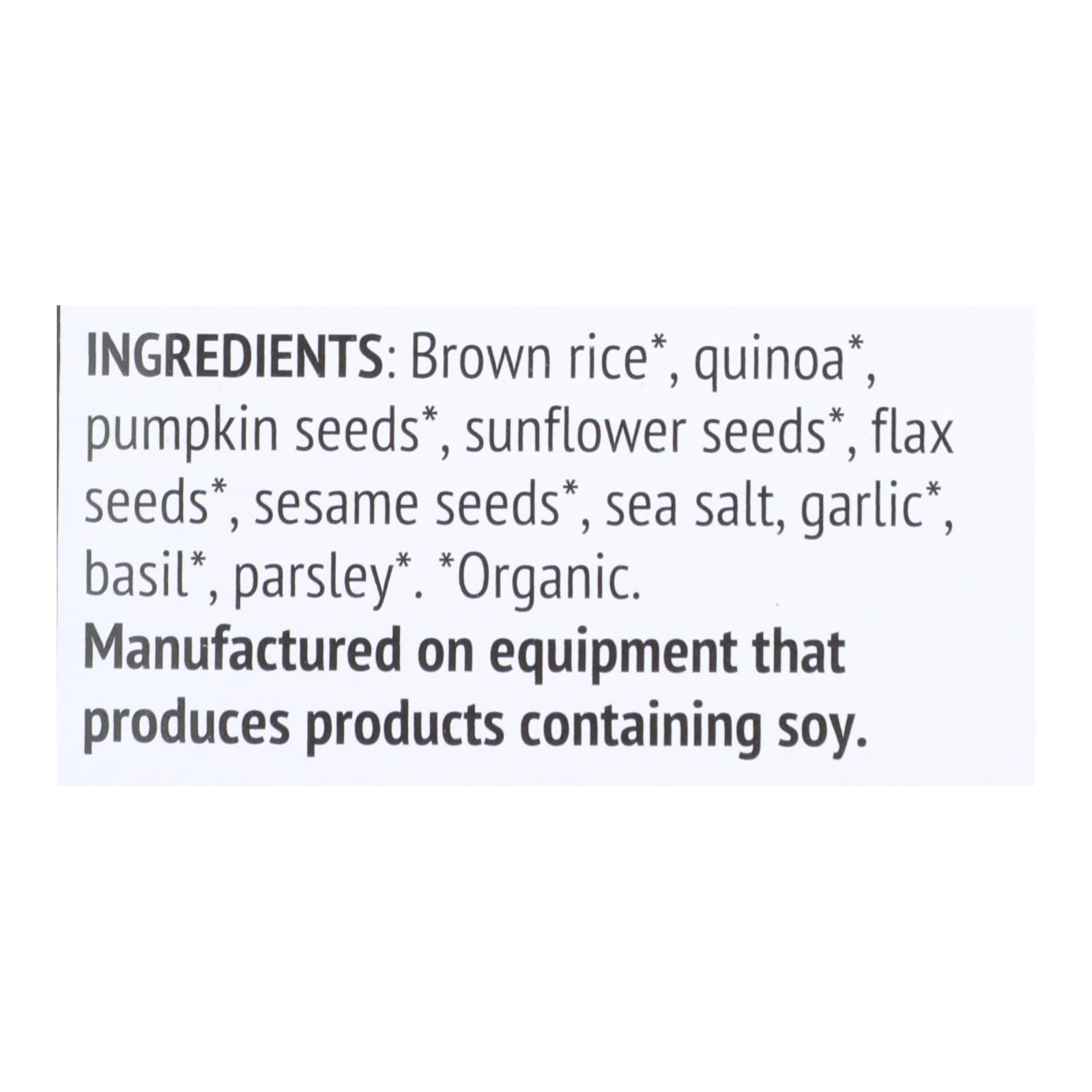 ingredients : brown rice;quinoa;pumpkin seeds;sunflower seeds;flax seeds;sesame seeds;sea salt;garlic;basil;parsley