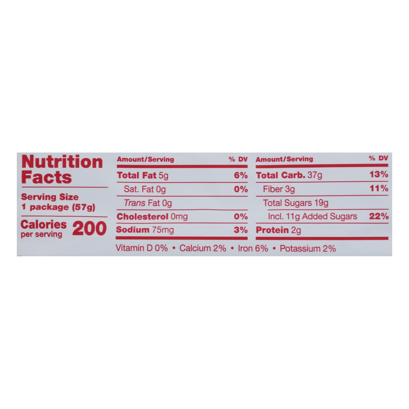 Nature's bakery pomegranate fig bars give you delicious tart-sweet flavor and a boost of energy to carry you through the day. Rice and cane syrup sweeten the fig and pomegranate center, and ancient grains such as teff, sorghum and amaranth go into the cookie-like coating. Pop a package in your child's lunch bag as a tasty snack that's not too sweet, or take a few packages with you for a snack on the go. Each 2 count package holds two fig bars.