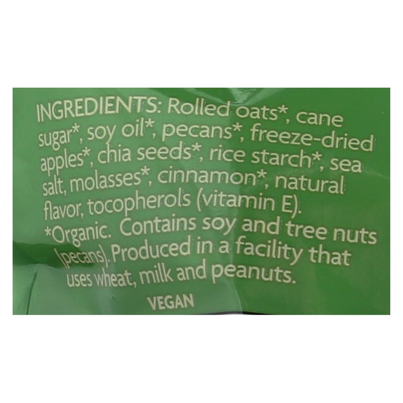 ingredients : rolled oats;cane sugar;soy oil;pecans;freeze-dried apples;chia seeds;rice starch;sea salt;molasses;cinnamon;natural flavor;tocopherols (vitamin e)