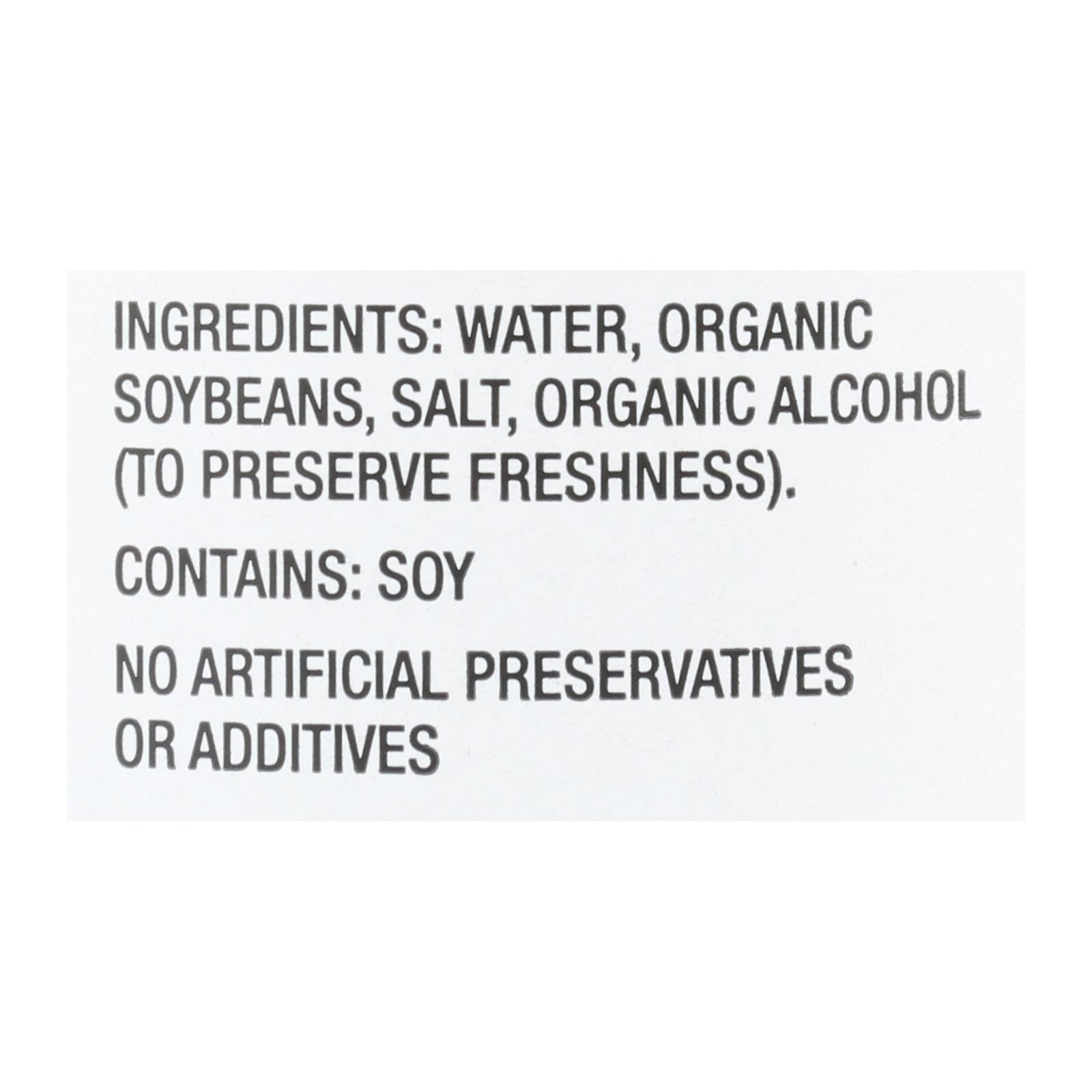 ingredients : water;organic soybeans;salt;organic alcohol (to preserve freshness)