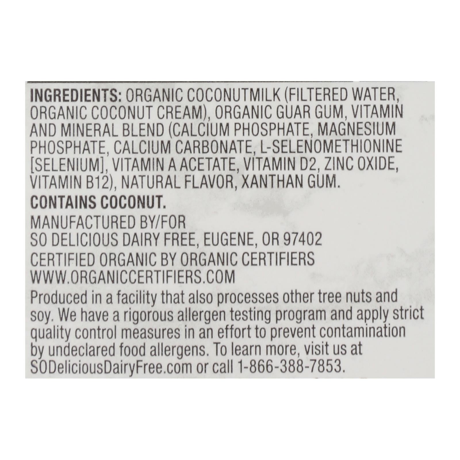 So Delicious Coconut Milk Beverage - Unsweetened Vanilla - Case Of 12 - 32 Fl Oz.