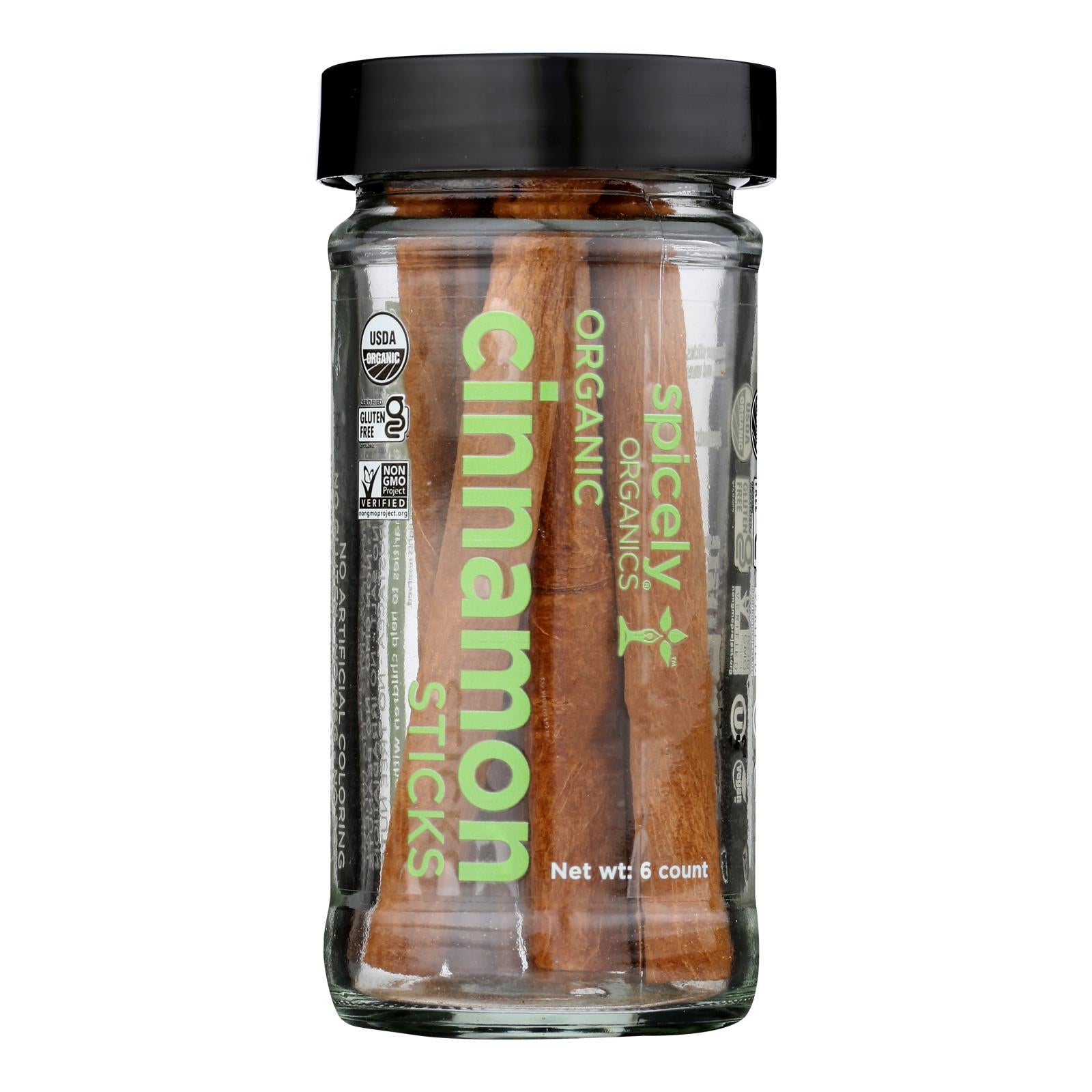 Usda organic. 100% vegan. Cinnamon sticks can be used in desserts to drinks to meat marinades. Www.spicely.com. P: 510.440.1044. Certified organic by global culture. No gluten - no msg - no artificial coloring - no preservatives - no sugar - no salt - non gmo - no irradiation. Certified gluten-free. Packaged with renewable choice energy. Non gmo project verified nongmoproject.org. Certified gluten-free. Made in the usa.