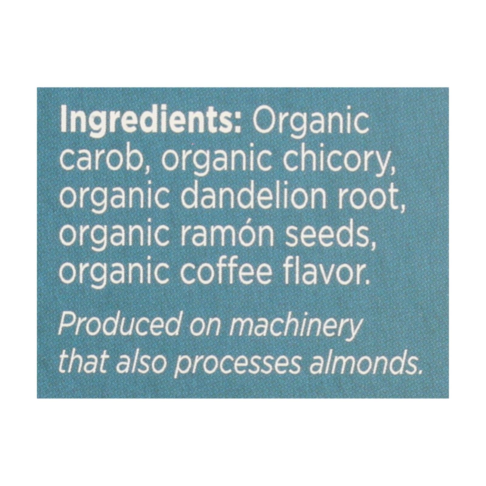 ingredients : organic carob;organic chicory;organic dandelion root;organic ramon seeds;organic coffee flavor