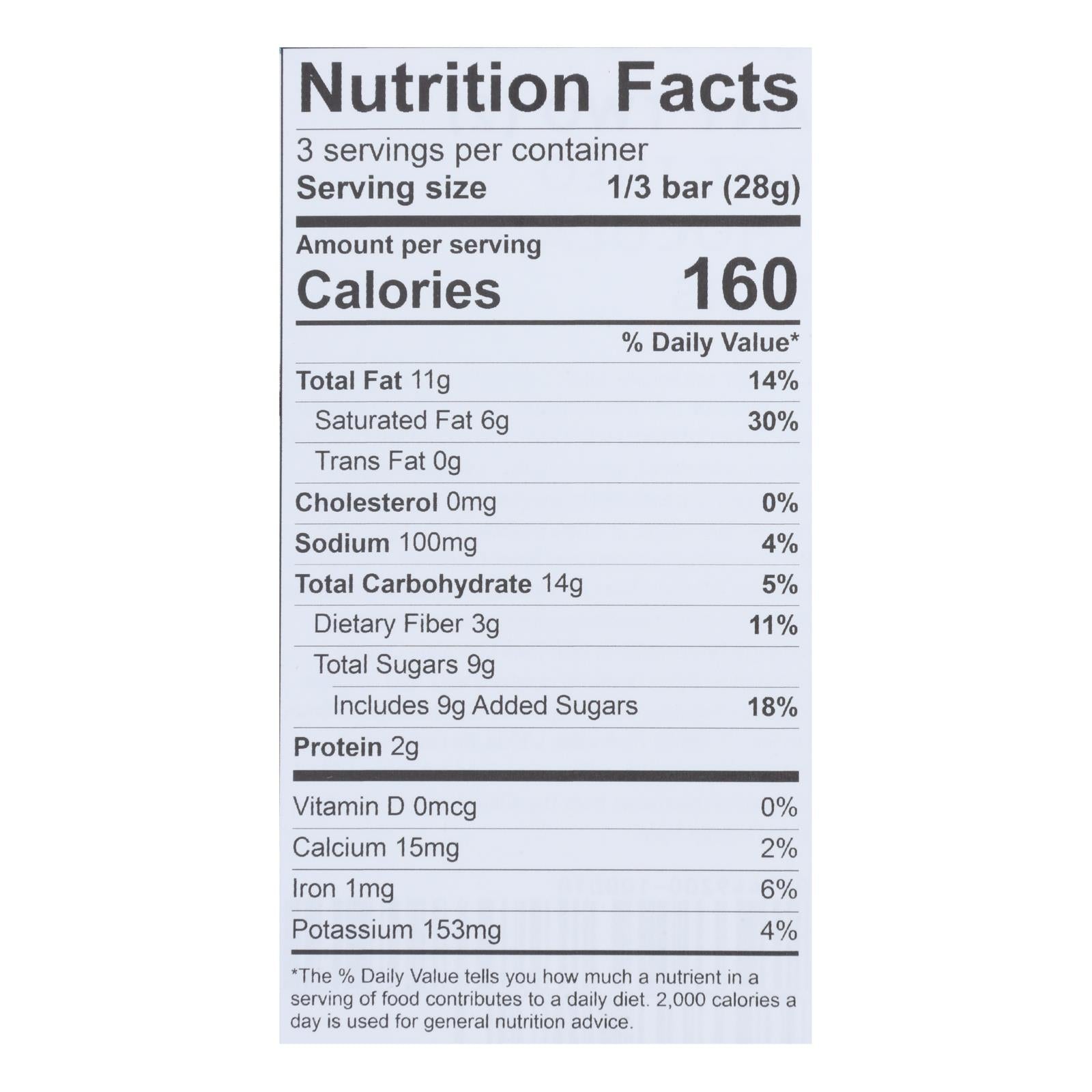 Theo dark chocolate and sea salt bars are vegan, non-gmo, organic and dairy kosher. Made with 99% certified fair trade ingredients, dark chocolate and sea salt bars feature cocoa beans, cane sugar and sea salt. Each half-bar serving contains 4 grams of protein, 3 grams of fiber, 0 trans fats and just 200 calories. Theo chocolate is made without using palm or soy. See nutrition facts panel for allergens.
