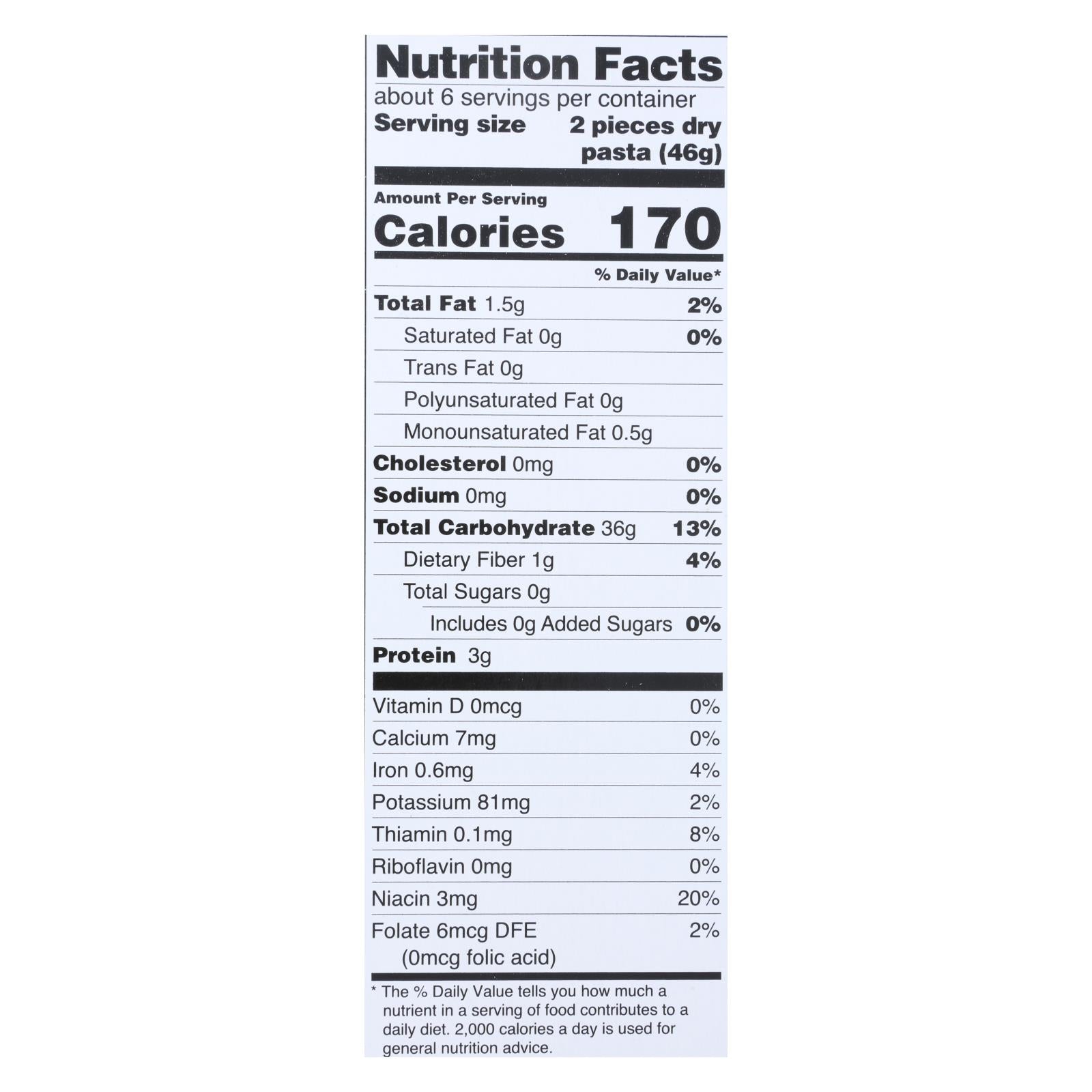 A classic in texture and taste. Organic. Good consistent texture. Not mushy. Al dente. Wheat free. Gluten-free. Not mushy! promising a delightful eating experience. We specialize: our entire production facility and all machines are dedicated to the manufacture of rice pasta-no other grain or cereal is used to prevent cross-grain contamination at production. Brown rice pasta, a cholesterol free food. See back panel for nutrition information. 100% organic manufacturer. Certified organic by organic crop improvement association (ocia). No preservatives added. This pasta is made from quality rice and formed to gourmet class. For years, our focus has been on making a pasta from rice that delivers an ultimate enjoyment of pasta. Rice does not contain gluten and is consumed by many that follow a gluten-free diet. To these many, it may be good to know that we specialize in making rice pastas. We do not make products from other grains or cereals. Joy! a rice pasta that cooks like any regular pasta. Award-winning taste. Al dente and not mushy. Its texture, superb. Perfect for a light-tasting family meal, for serving your loved ones and guests who are sure to appreciate, with joy! please visit our web-site for more information and some delicious recipes. Www.ricepasta.com. Www.tinkyada.com. 1-888-323-2388. Classic in texture and taste. Made in canada.