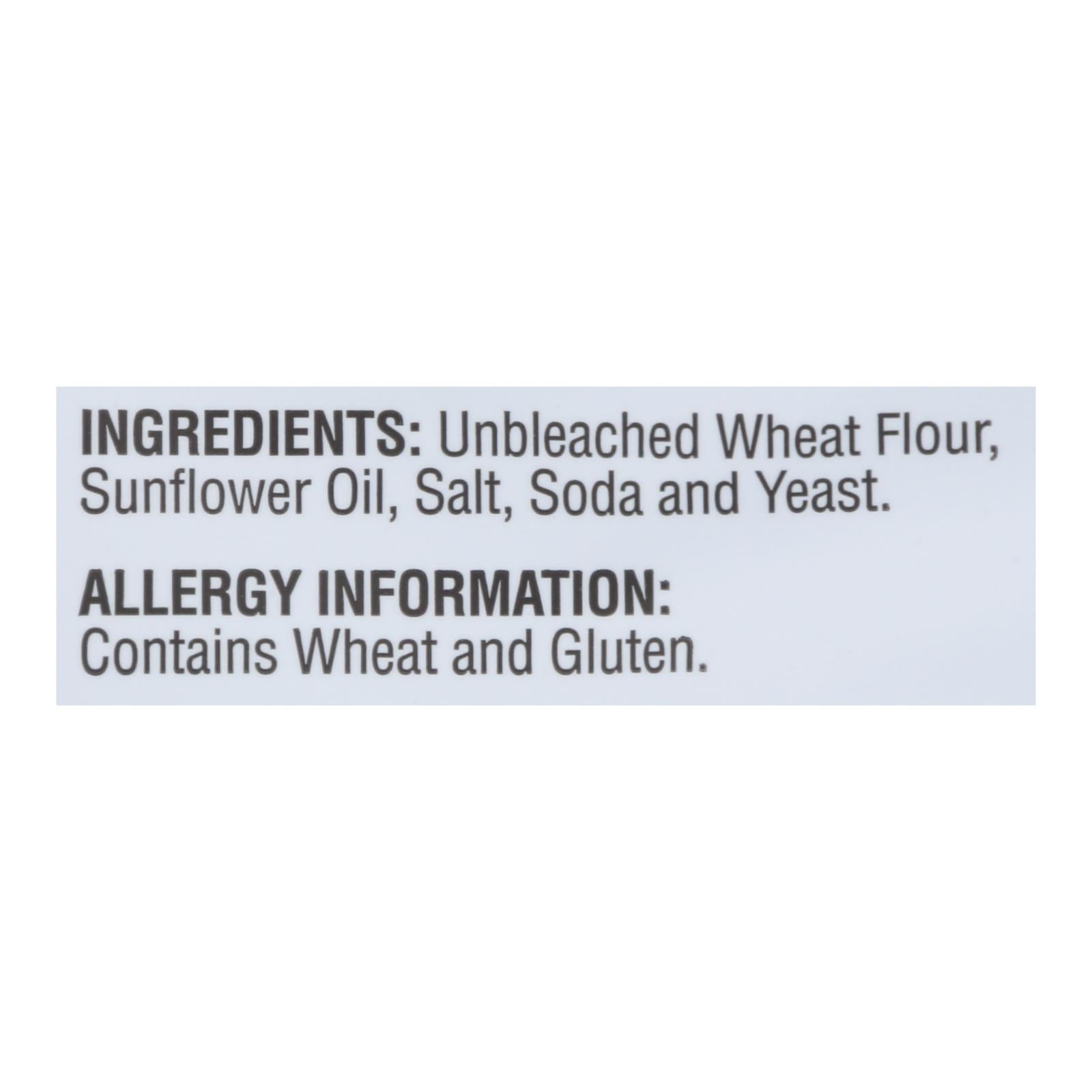 ingredients : unbleached wheat flour;sunflower oil;salt;soda and yeast