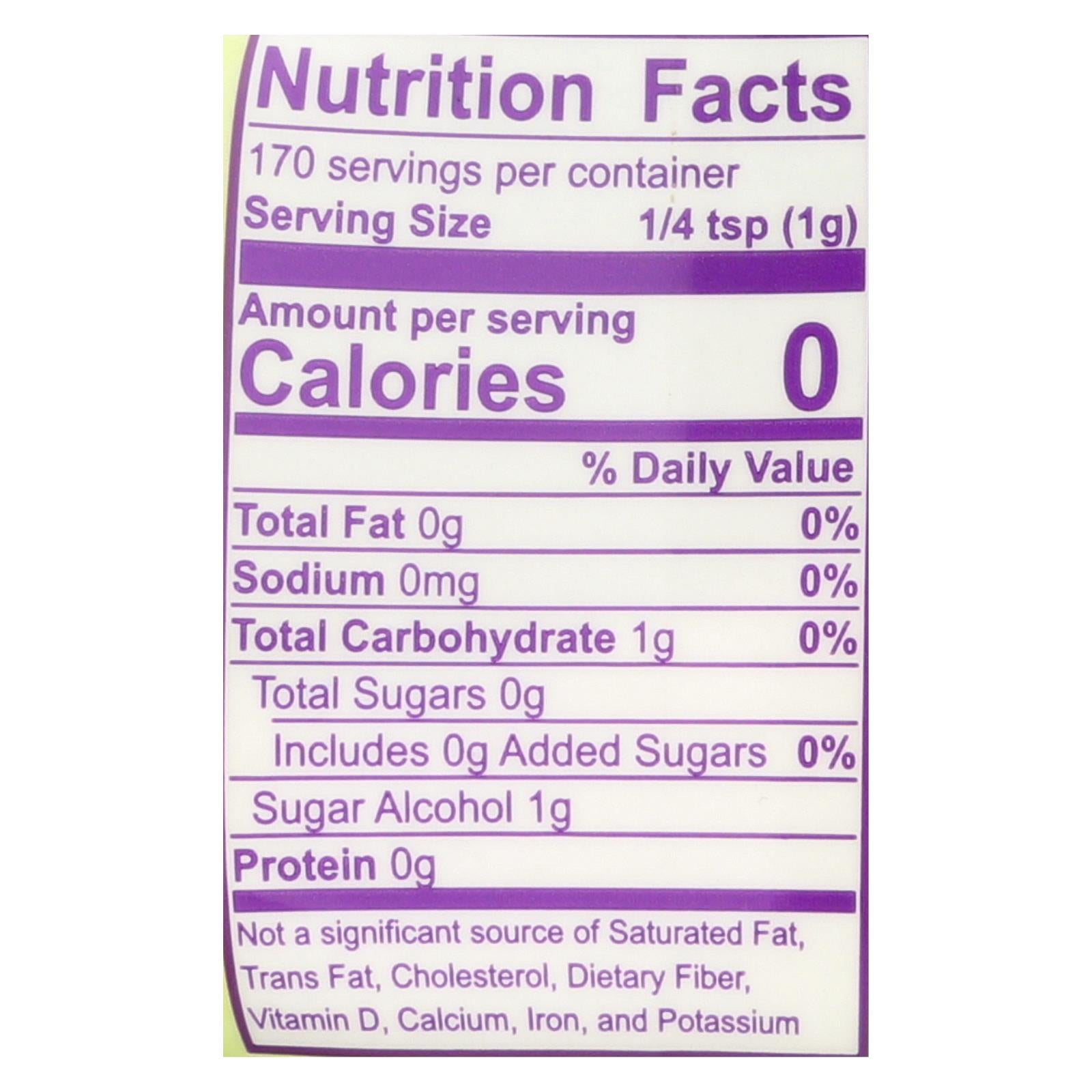 ingredients : organic erythritol;organic stevia extract;natural flavors